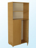 изготовлен из ЛДСП, торцы облицованы кромкой ПВХ 0,4 мм. В верхней секции две открытые ниши, нижняя секция закрыта двумя дверями, внутри 2 выдвижные штанги с зажимами для плакатов. На дверях установлены ручки-скобы металлические. Шкаф снабжен ножками-опорами регулируемыми по высоте